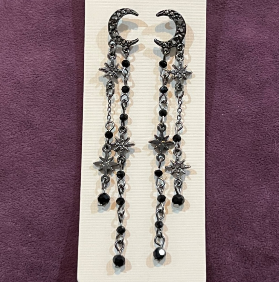 ✨ گوشواره بلند میخی وارداتی طرح ماه و ستاره کد 093