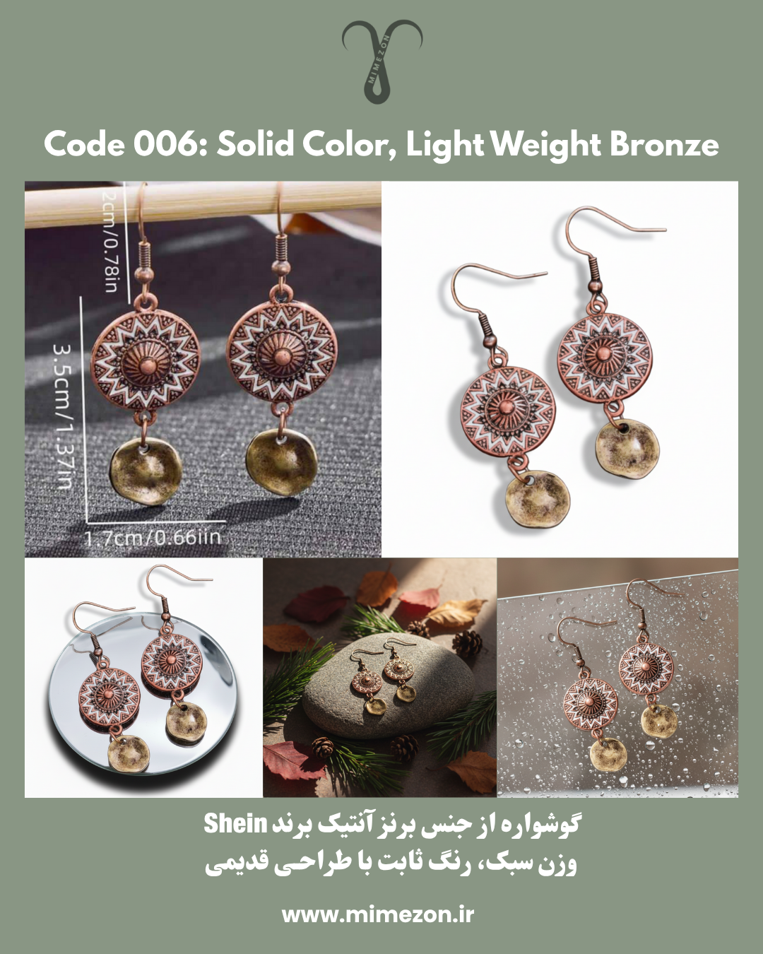 گوشواره برنز آنتیک برند shein کد 006