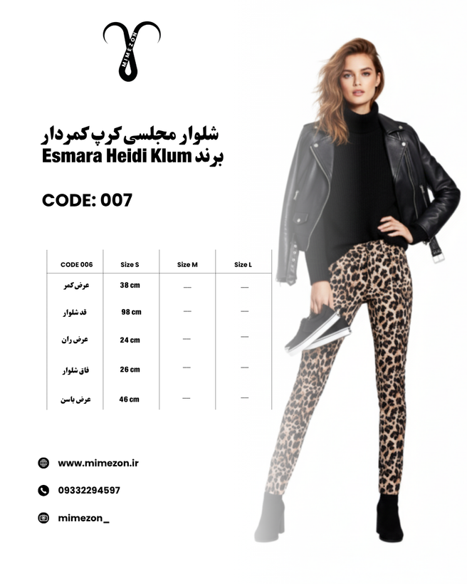 📏 جزئیات سایزبندی: (اندازهها به سانتیمتر)