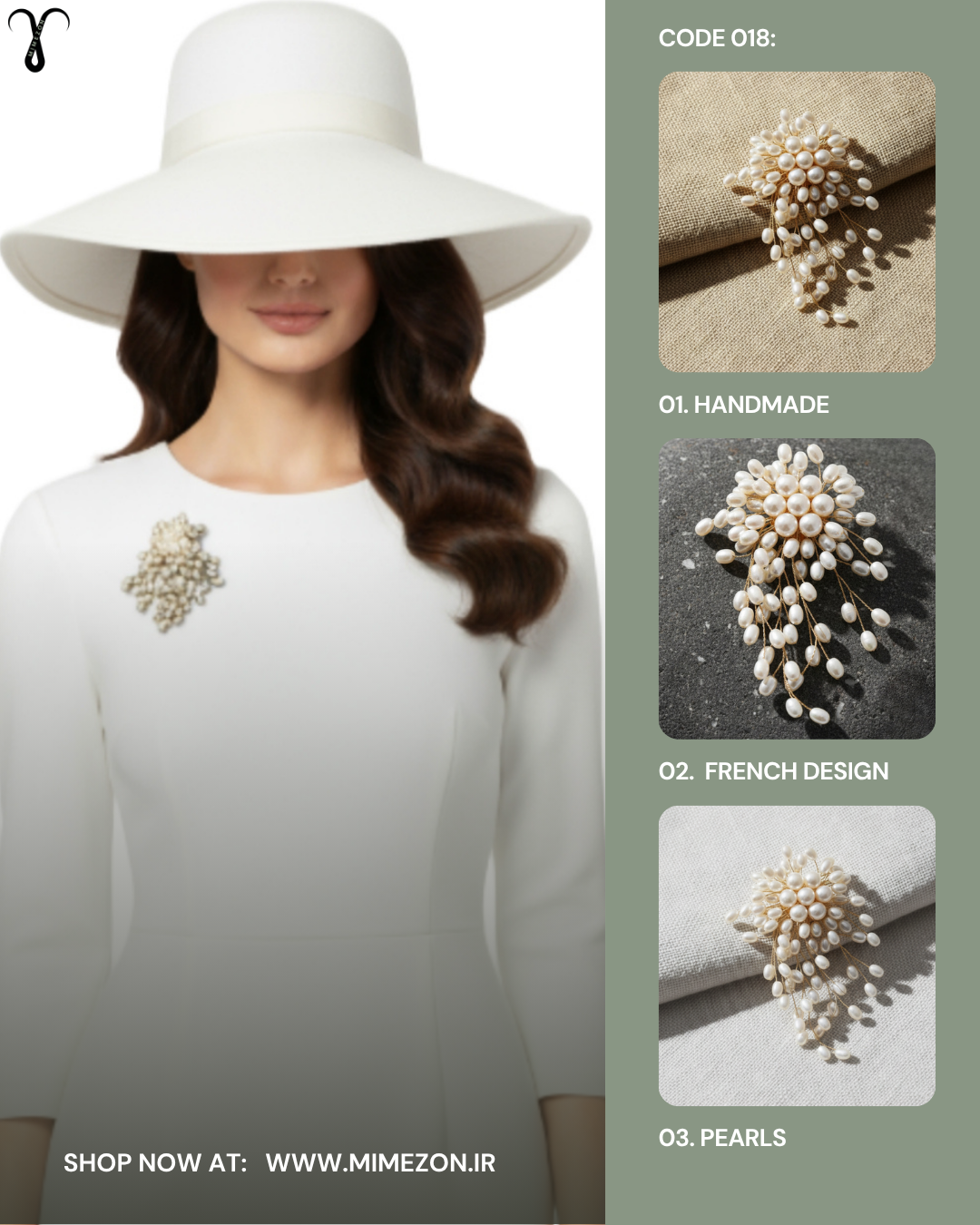 سنجاق سینه مرواریدی دست ساز برند Shein کد 018