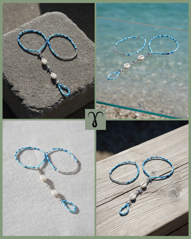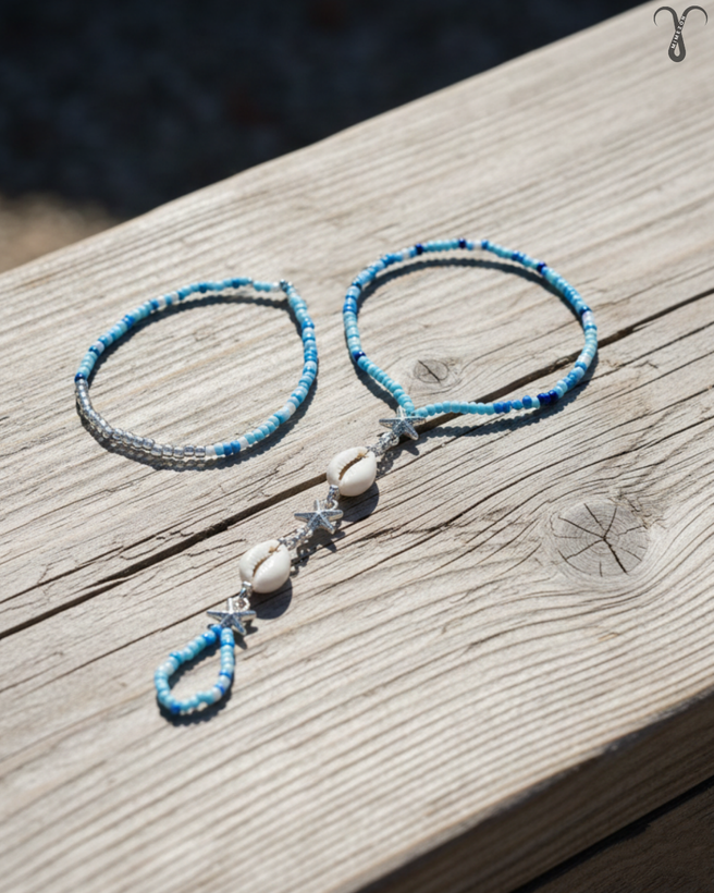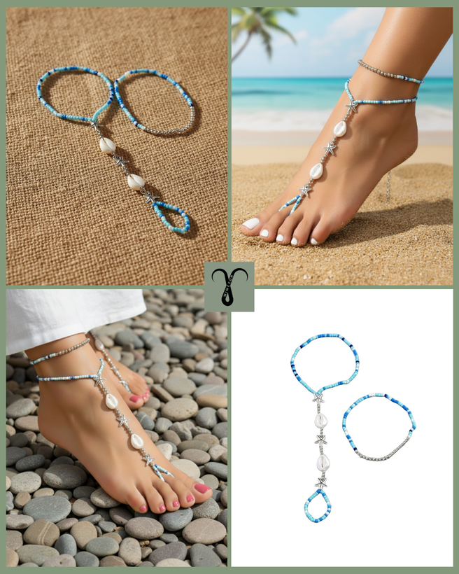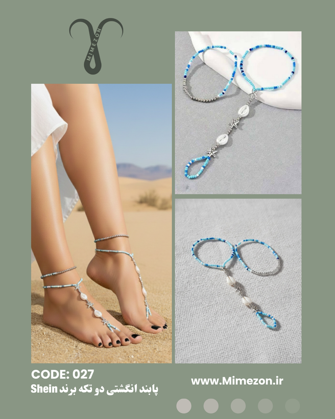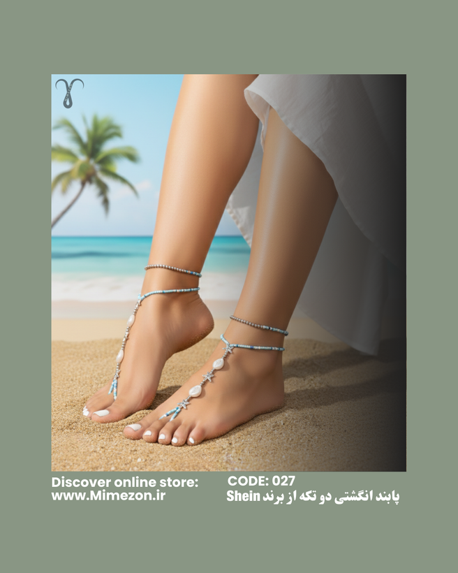 پابند انگشتی دو تکه، محصولی وارداتی و هایکوالیتی از برند محبوب Shein (شیاین) با طراحی خاص اروپایی است. بخش اول شامل یک پابند کشی راحت و بخش دوم انگشتی و مزین به مهرههای ظریف با تم دلنشین دریایی و اقیانوسی است.