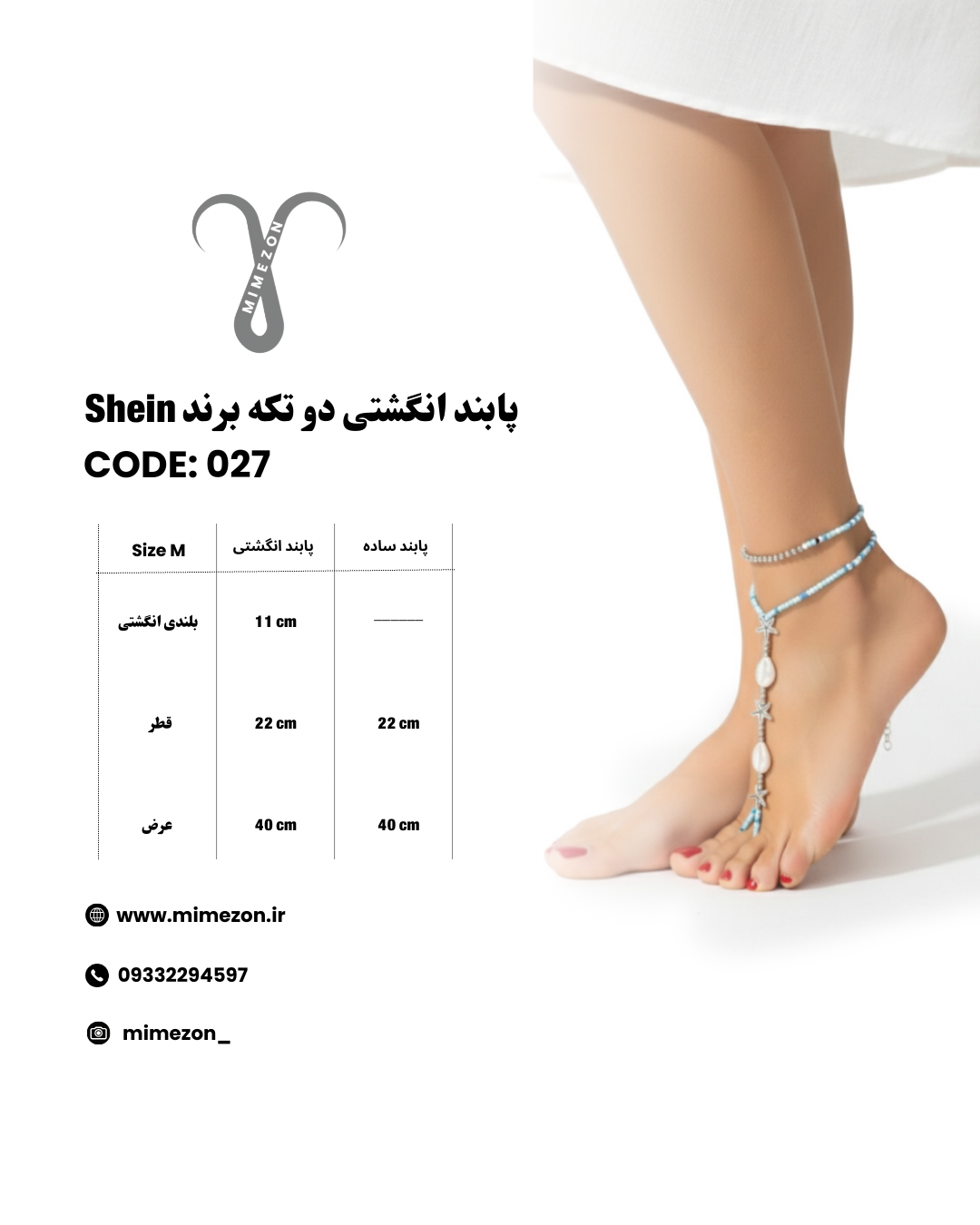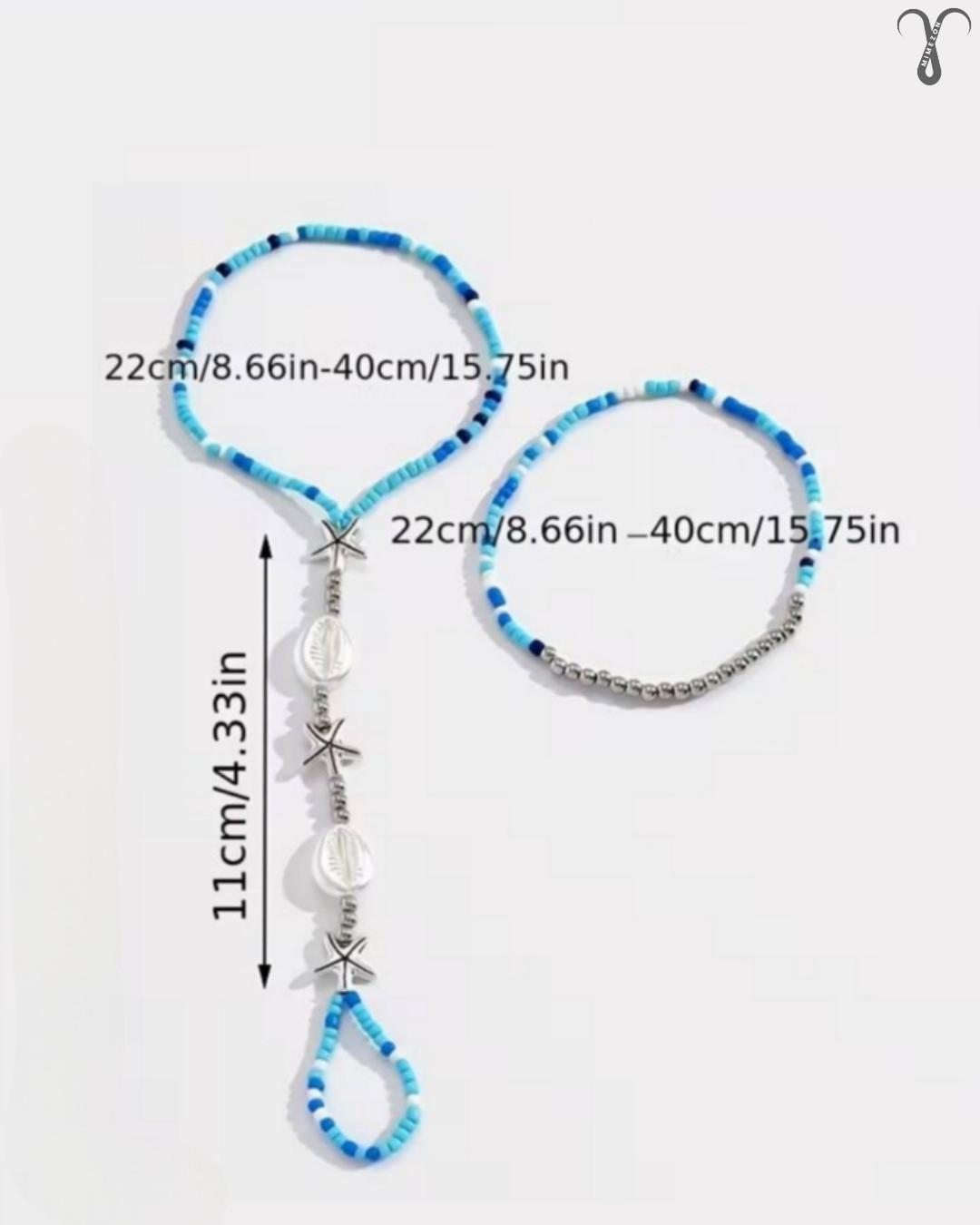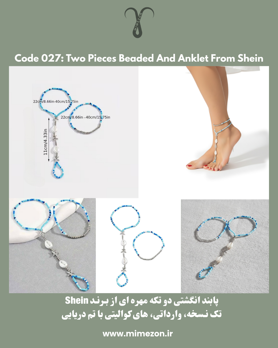 پابند انگشتی دو تکه، محصولی وارداتی و هایکوالیتی از برند محبوب Shein (شیاین) با طراحی خاص اروپایی است. بخش اول شامل یک پابند کشی راحت و بخش دوم انگشتی و مزین به مهرههای ظریف با تم دلنشین دریایی و اقیانوسی است.