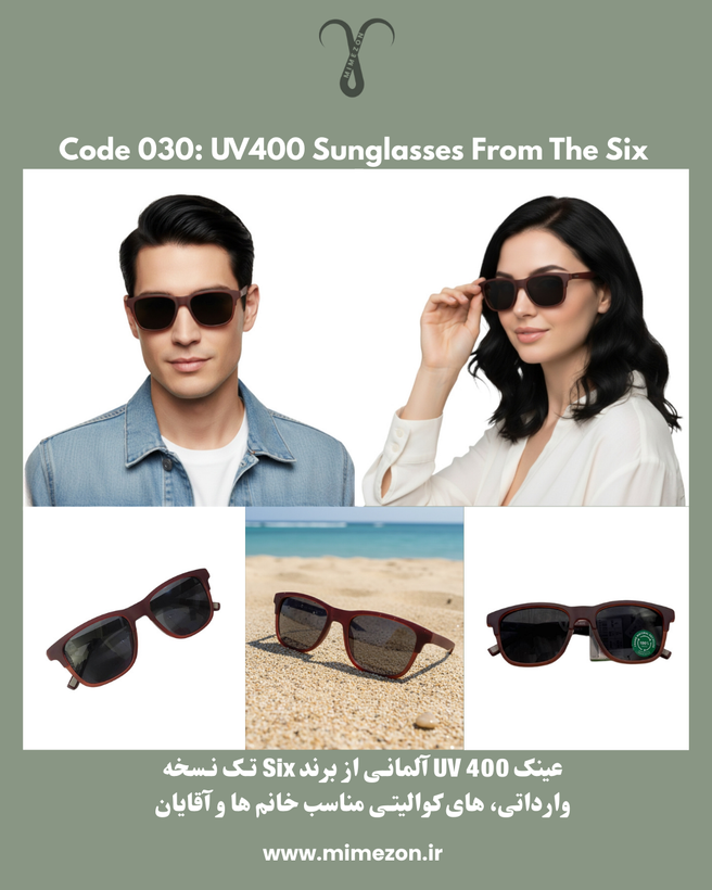 اگر به دنبال ترکیبی از کیفیت مهندسی آلمان و طراحی منحصربهفرد هستید، عینک UV400 برند Six بهترین انتخاب برای شماست. این عینک وارداتی با فیلتر کامل اشعههای مضر، نهتنها از چشمان شما در تمام فصول محافظت میکند، بلکه به دلیل طراحی «تکنسخه»، استایلی متمایز و غیرقابل تکرار به شما میبخشد. مناسب برای خانمها و آقایانی که به جزئیات اهمیت میدهند.