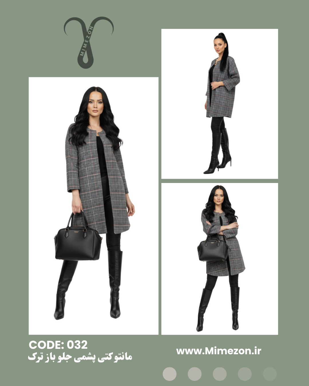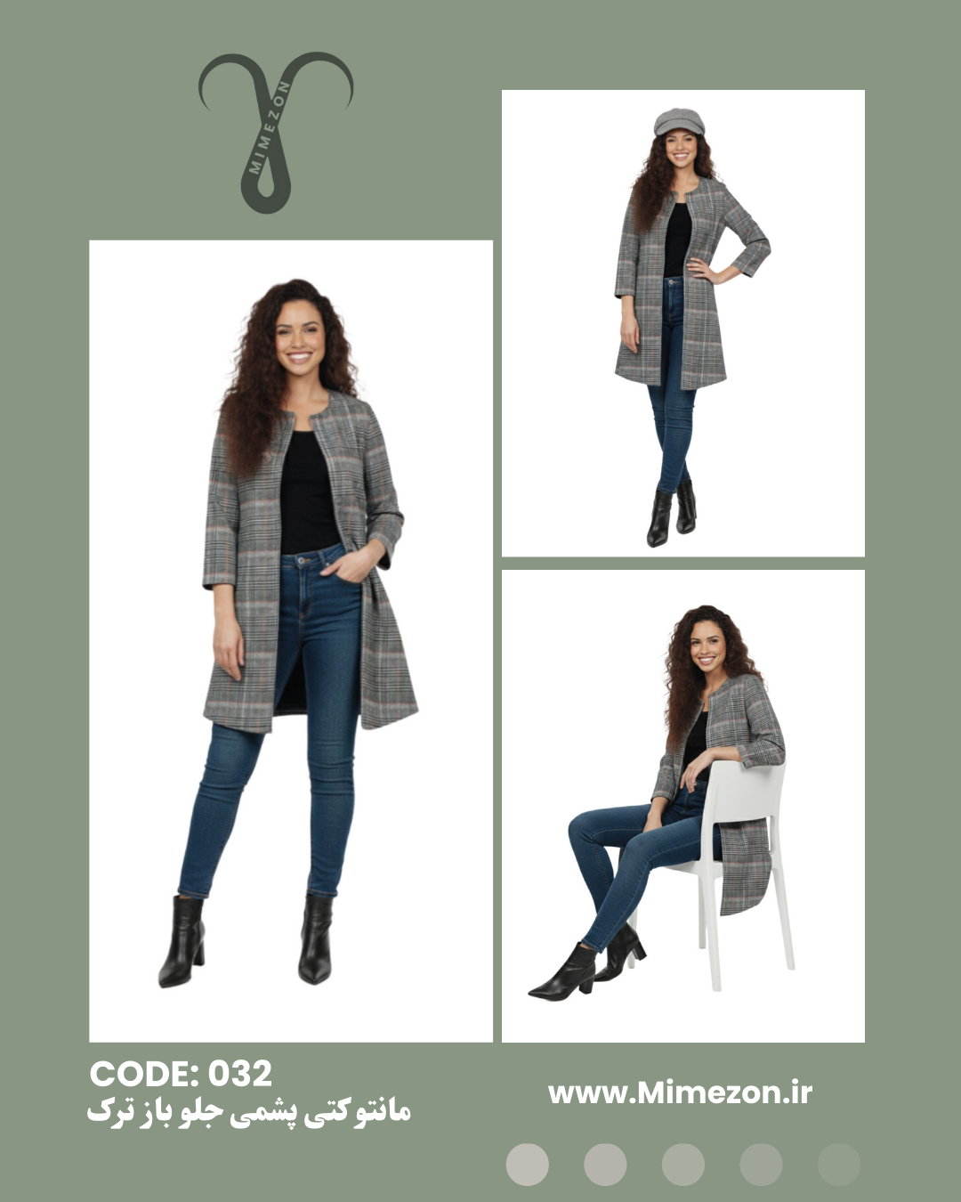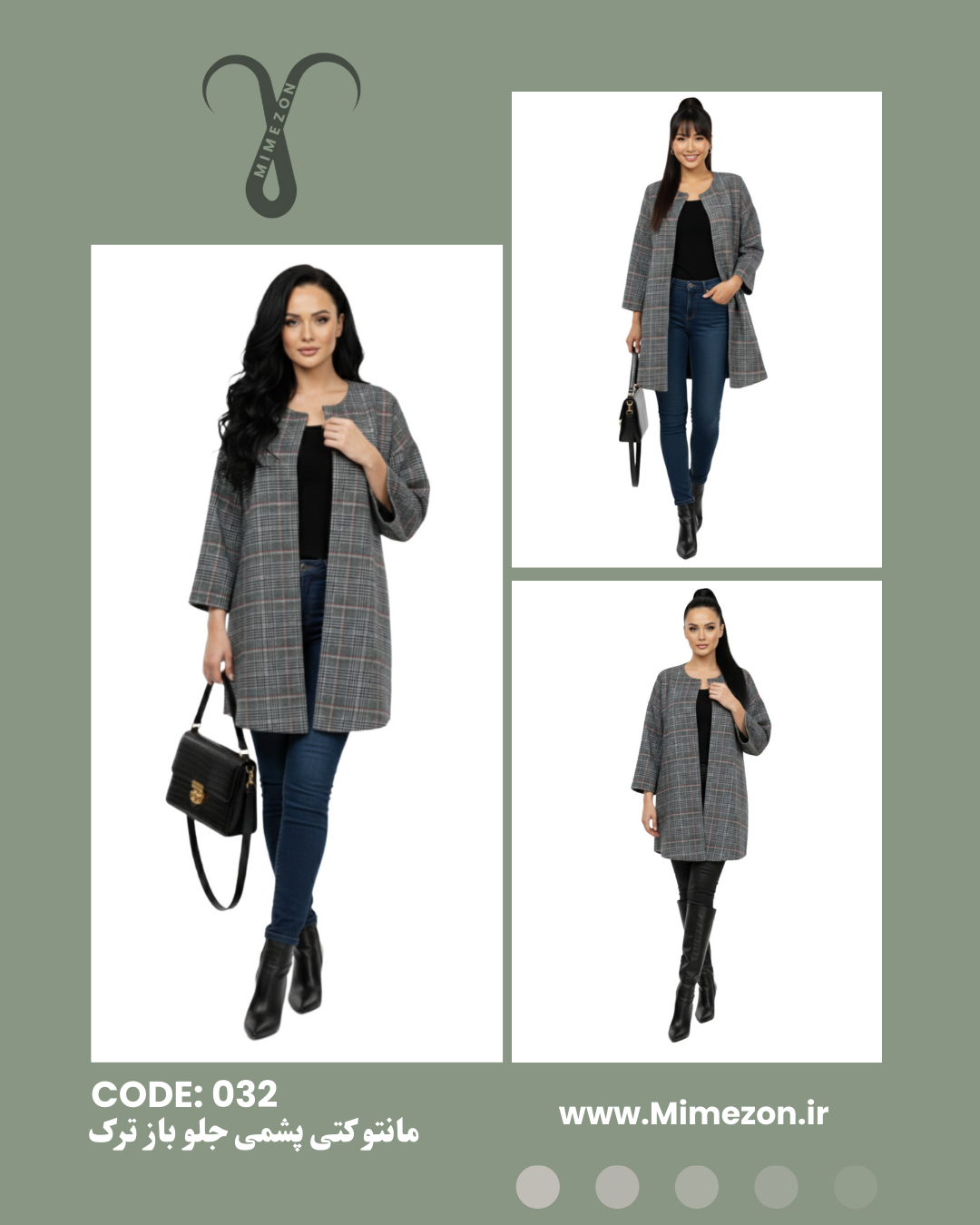 👕مانتو کتی پشمی جلو باز ترک کد 032