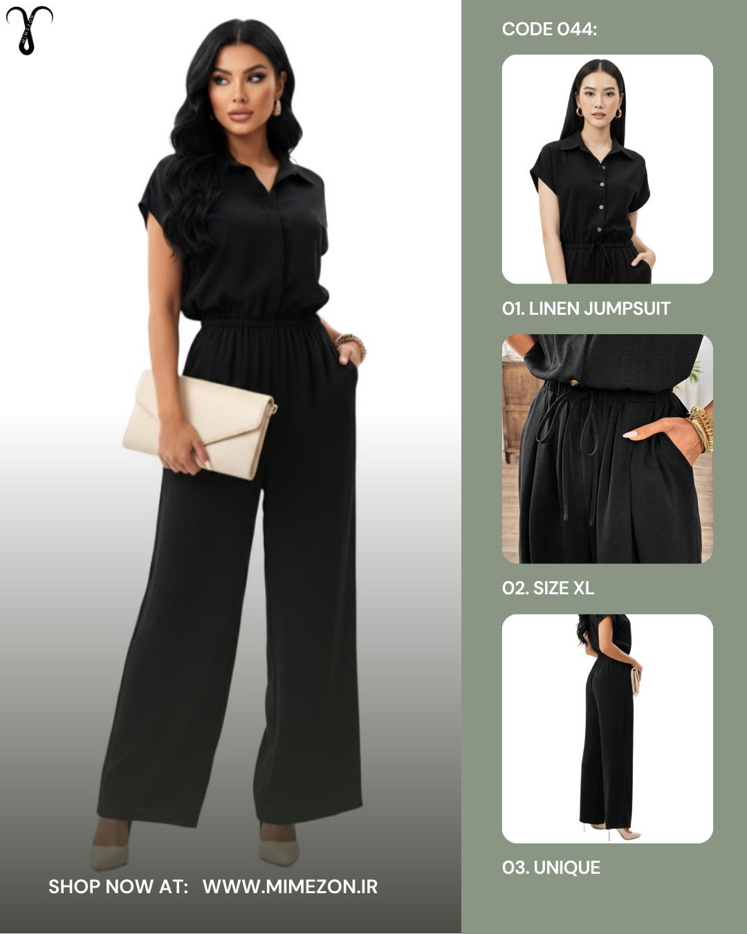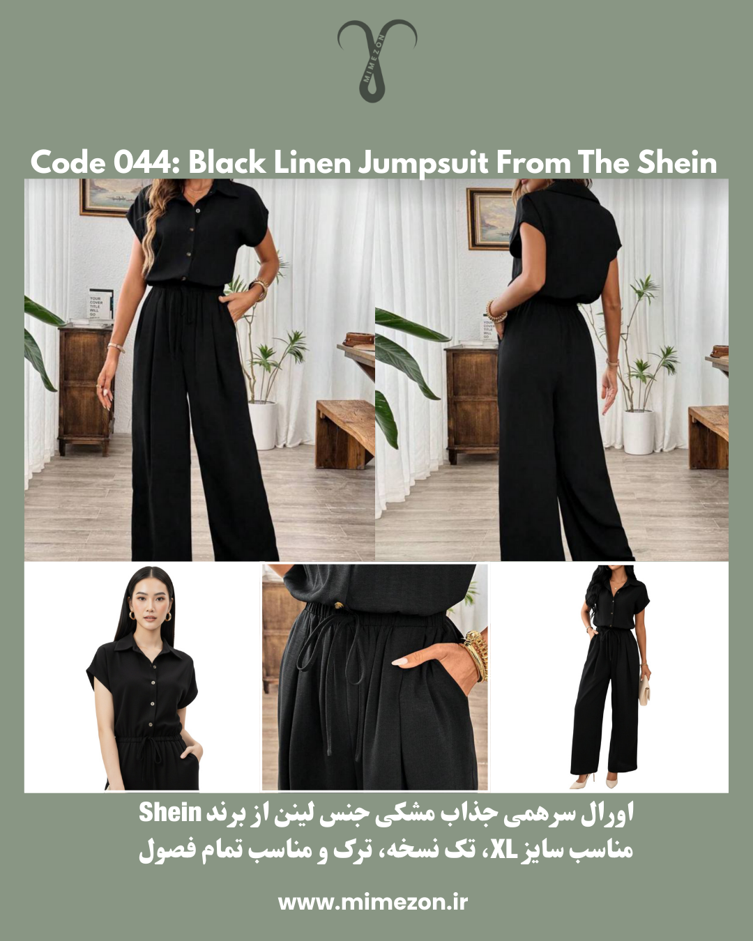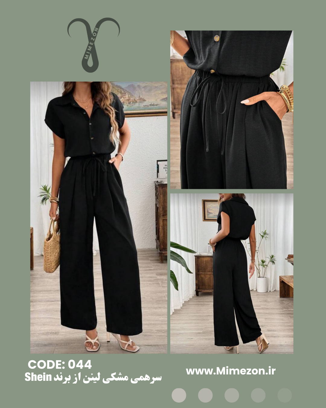 👘سرهمی اورال مشکی لینن از برند Shein کد 044