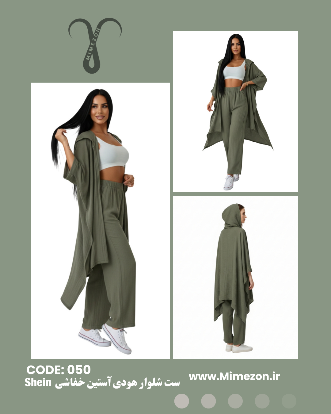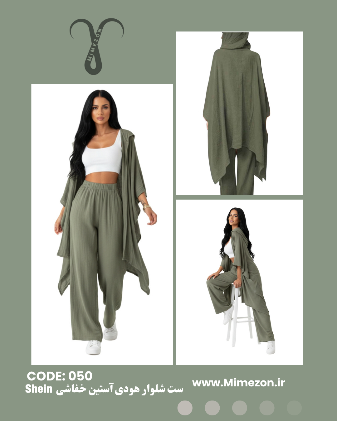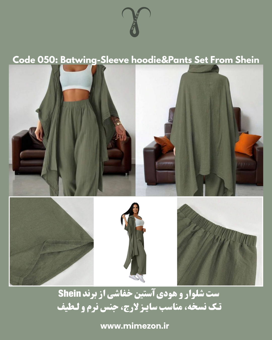 🧥ست شلوار و هودی آستین خفاشی برند Shein کد 050