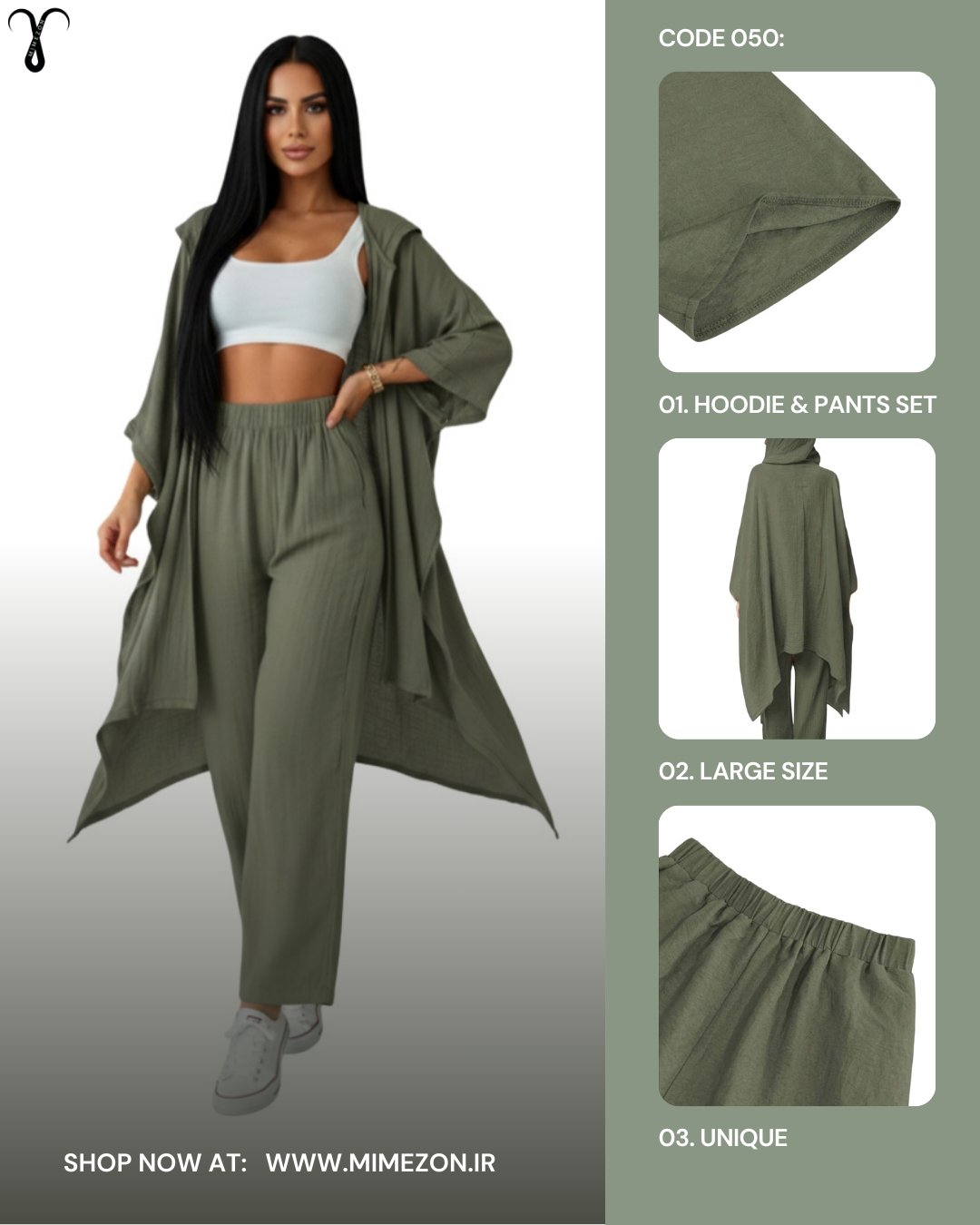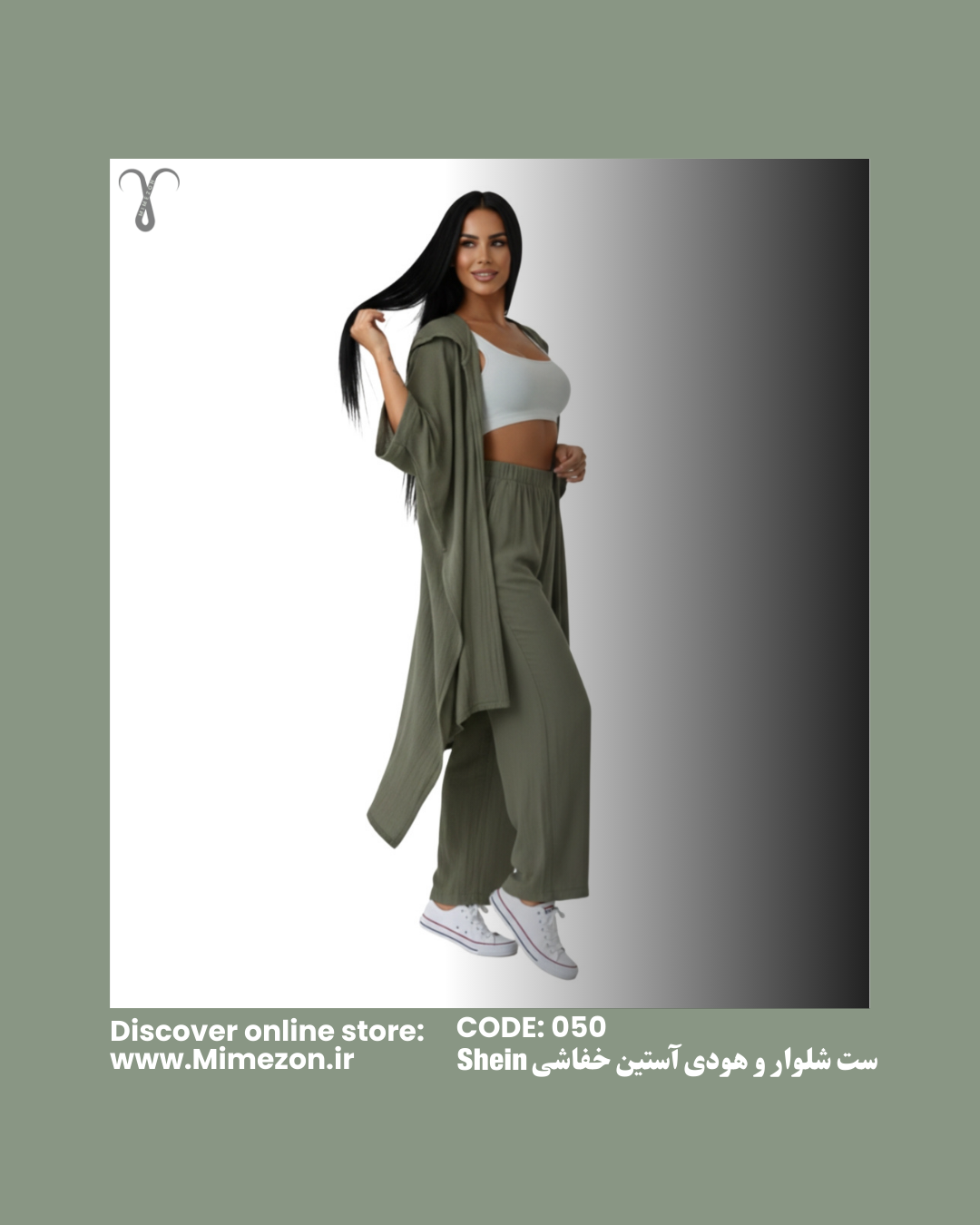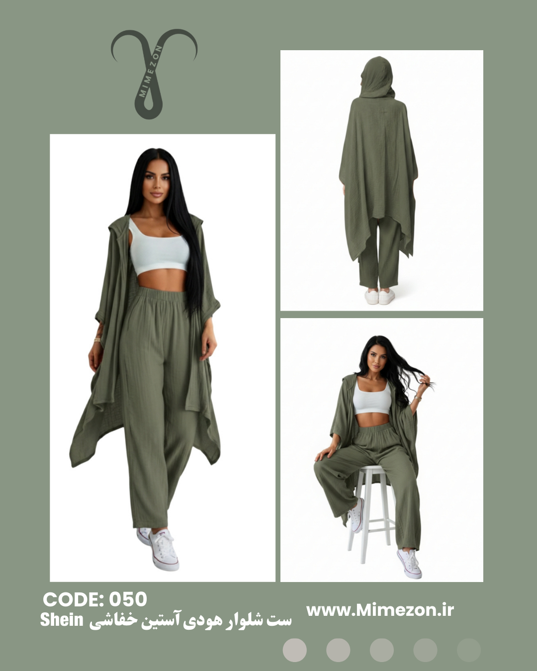🧥ست شلوار و هودی آستین خفاشی برند Shein کد 050