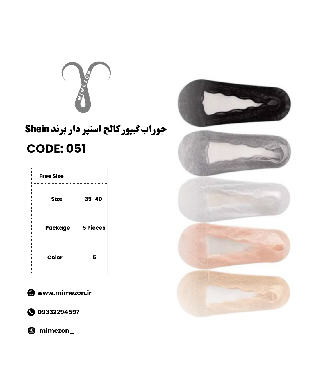 با پک پنجتایی جوراب گیپور کالج استپر دار برند Shein، استایل کلاسیک و شیک خودت رو کامل کن! این جورابهای وارداتی با جنس گیپور طرحدار، طراحی ظریف و خاص، دارای استپر و چسب پشت پا هستن تا کاملاً فیکس و بدون لیز خوردن داخل کفش قرار بگیرن. فریسایز (مناسب ۳۵ تا ۴۰)، نرم، خنک و مناسب فصول گرم؛ قابل خرید بهصورت تکی یا پک کامل در پنج رنگ جذاب. انتخابی یونیک و هایکوالیتی برای استایلهای ظریف و مینیمال ✨