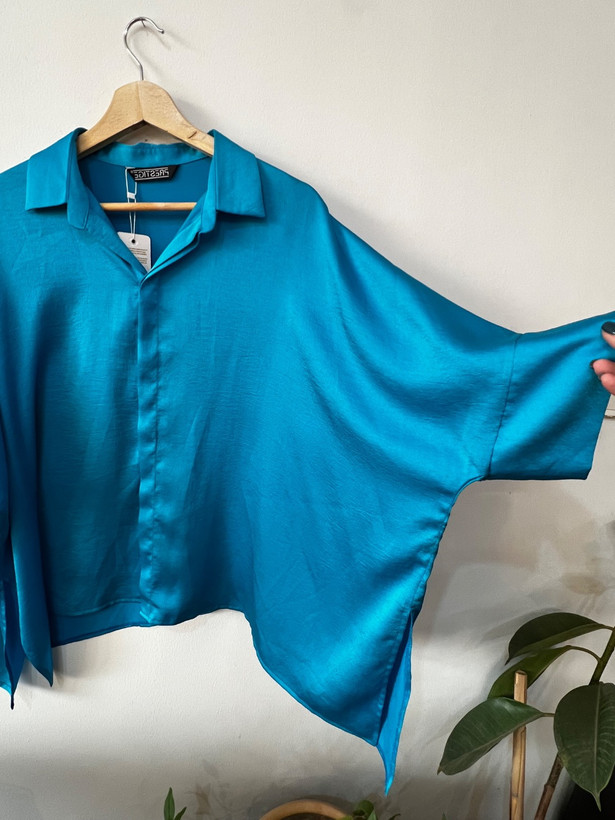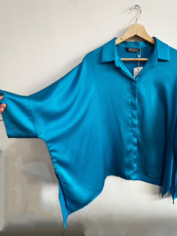 ▫️شومیز سیلک زنانه ترک با کیفیت بالا و طراحی خاص و چشمگیر که جلوهای چشمنواز به استایل شما میدهد. سرشانه های این شومیز آزاد و مدل آستین های آن پانچو بوده و مناسب تمام سایز هاست. این محصول وارداتی و اروپایی است که با توجه به پارچهی سبک و خوشفرم، برای استایلهای کژوال، روزمره و نیمهرسمی انتخابی بینقص است