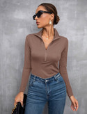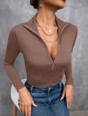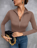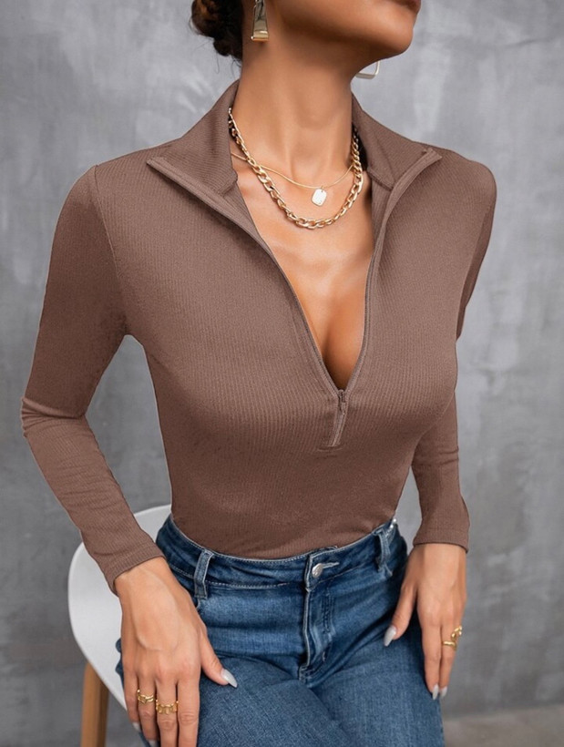 بلوز کشی زنانه با آستین های بلند و یقه زیپ دار با تن خور جذاب و شیک، استایلی خاص برای شما ایجاد میکند. این بلوز وارداتی و تک نسخه، از برند معتبر شین میباشد و قابل استفاده با هر نوع استایل و در هر فصلی میباشد. اگر به دنبال استایلی خاص هستید، جای این بلوز در کمد لباس شما خالی است.