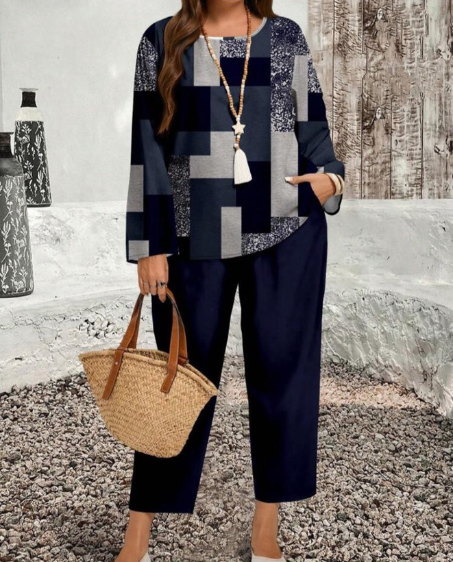 ست بلوز شلوار مجلسی سایز بزرگ کمر کشی برند Shein با کد 079